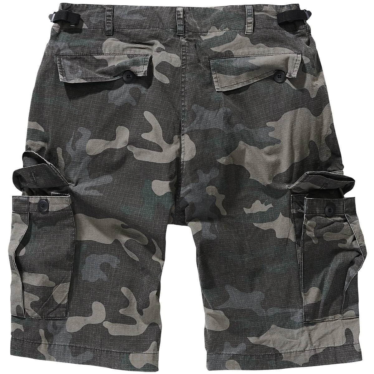 Die beliebte BDU Ripstop Shorts von Brandit ist der ideale Begleiter durch den Sommer. Sie ist bequem geschnitten und besteht zu 100% aus Baumwolle, was ein angenehmes Tragegefühl verspricht. Dank der 2 seitlichen Einschubtaschen, der 2 geknöpften Gesäß-Pattentaschen sowie der 2 seitlich aufgesetzten geknöpften Bein-Cargotaschen ist die Shorts auch sehr praktisch und bietet viel Stauraum. Die Bermuda wird mit einer Knopfleiste geschlossen. Sie besitzt an den Seiten Verstellbänder, mir denen die Taillenweite bequem reguliert werden kann und breite Gürtelschlaufen (ca. 4,5 cm). Aufgrund des Ripstop-Gewebes ist die Shorts besonders robust: alle paar Millimeter zieht sich ein kräftigerer Kett- bzw. Schussfaden durchs Gewebe. Sollte das Material reißen, läuft der Riss nicht ungebremst durch die gesamte Fläche, sondern stoppt am stärkeren (Rip Stop) Faden! Spart also Gewicht und bietet trotzdem Stabilität.