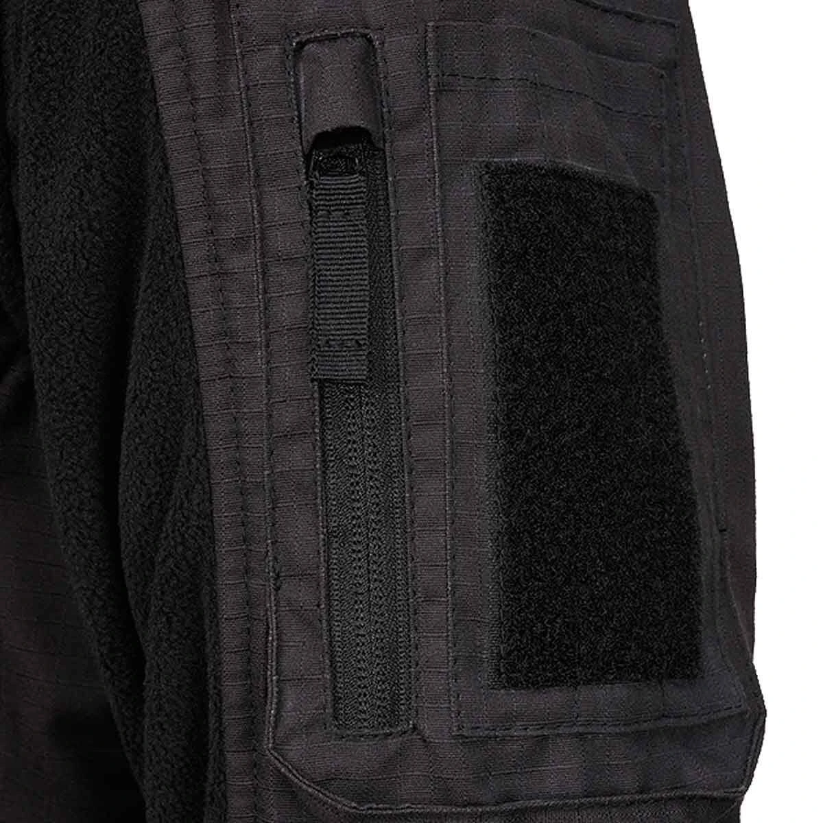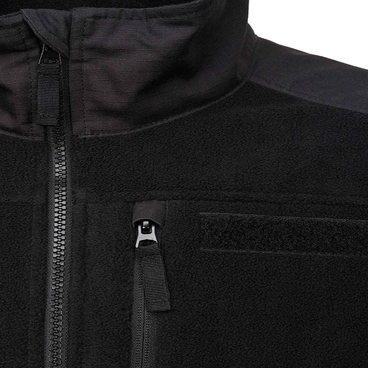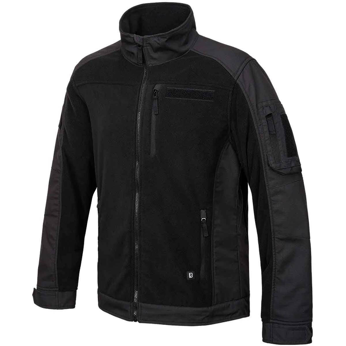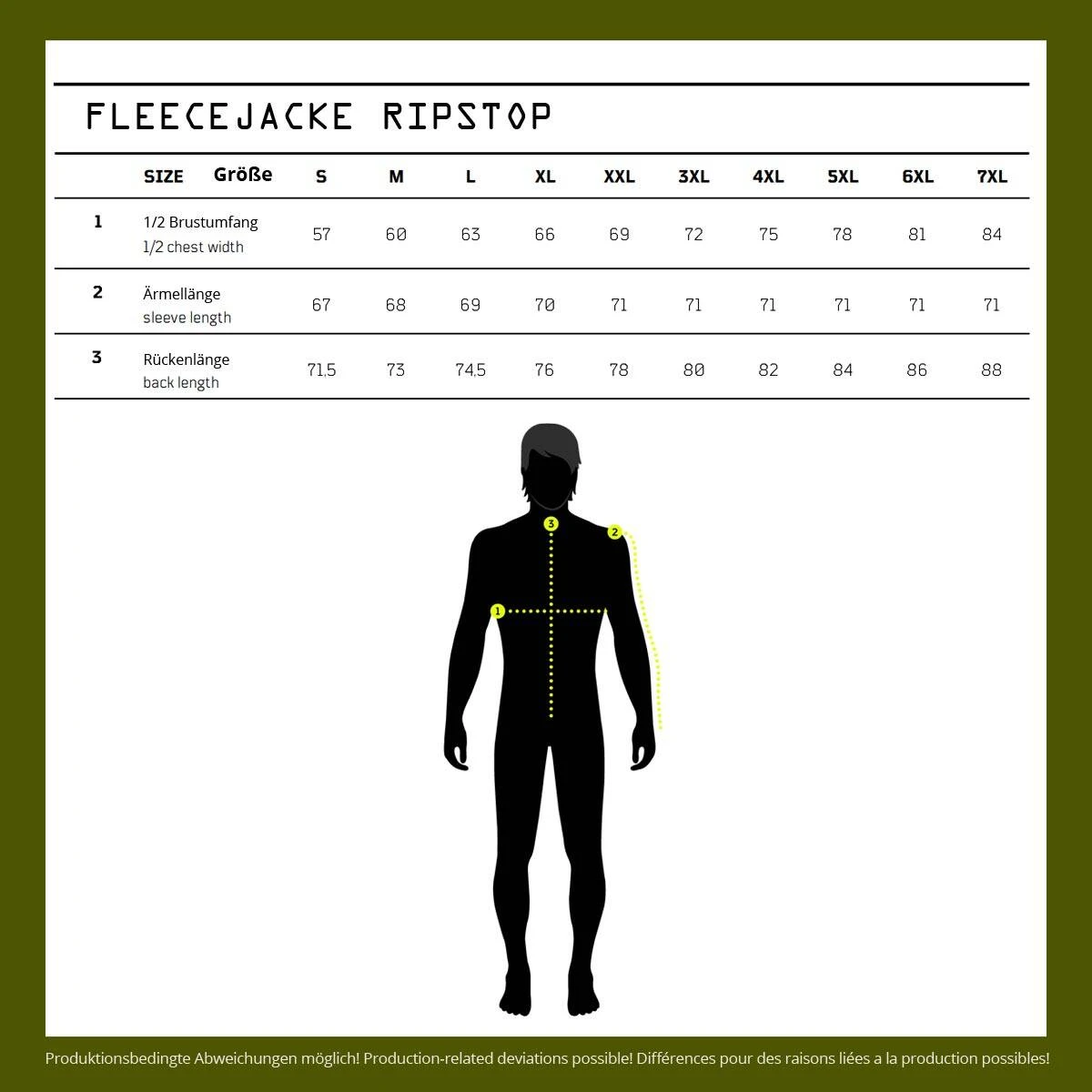 Die schwarze Fleecejacke Ripstop von Brandit mit verlängertem Rückenteil und regulierbaren Saum mit Kordelstopper, ist eine robuste sportliche Fleecejacke aus einem warmen und weichen Fleece-Material. Das robuste, wasserabweisende Ripstop Material hält auch stärkeren Beanspruchungen stand. Der stabile Kunststoffreißverschluss mit hinterlegter Windschutzleiste und dem Kinnschutz lassen garantiert kein kühles Lüftchen durch. Weitere praktische Details sind die 3 Außentaschen mit Reverse-Reißverschlüssen und den Zipper-Pullern für ein einfaches Öffnen und Schließen. Die Innentasche ist ebenfalls mit einem Reißverschluss ausgestattet. An den Oberarmen befinden sich 2 Klettflächen. Eine weitere Klettfläche zum Anbringen eines Namenstreifens befindet sich auf der Brust. Die Armabschlüsse sind mittels Klettverschlusses weitenregulierbar.