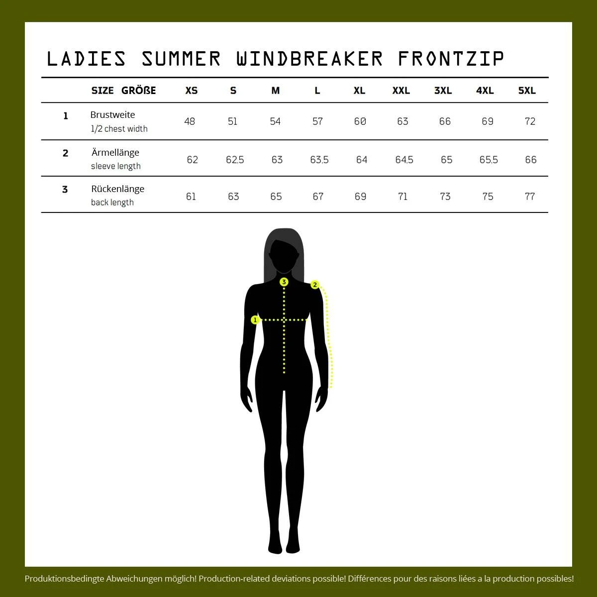 Der Ladies Summer Windbreaker mit Frontzip in der Farbe oliv ist die perfekte Jacke für windige und regnerische Tage. Das Obermaterial ist wind- und wasserabweisend, das atmungsaktive Mesh-Innenfutter sorgt auch bei schweißtreibender Aktivität für ein angenehmes Tragegefühl. Die leichte Windjacke kommt mit vielen praktischen Details. Die mit Kordel verstellbare Kapuze hält den Kopf trocken, der Frontreißverschluss mit Windschutzleiste ist stabil gearbeitet. Zwei seitliche Taschen werden ebenfalls mit Reißverschluss geschlossen. Die Ärmelabschlüsse mit Gummizug lassen keinen Windhauch durch. Alle Reißverschlüsse besitzen einen Zipp-Puller für leichtes Öffnen und Schließen. Insgesamt eine empfehlenswerte, leichte Damen (Women) Windjacke.