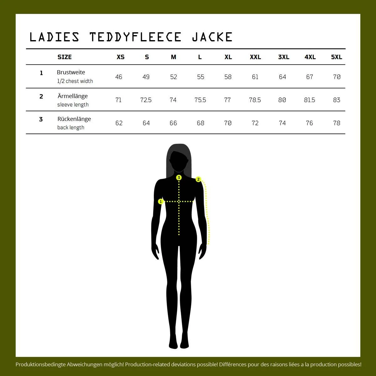Die Ladies Teedyfleece Jacke von Brandit besitzt eine hohe Wärmeleistung und ist perfekt geeignet für kalte Tage. Das hochflorige, warme Teddy-Fleece außen in Verbindung mit dem atmungsaktiven Innenfutter sorgen für ein angenehmes Tragegefühl. Die geräumige Kapuze wärmt zusätzlich. Der hochwertige Mittelreißverschluss mit Windschutzleiste und der Kinnschutz halten jeden Luftzug ab. Weitere nützliche Details sind die geräumige Brusttasche und 2 seitliche Einschubtaschen je mit Reverse-Reißverschluss. Die Innentasche schließt mittels Klettverschlusses. Alle Zipper besitzen eine praktische Zughilfe. Die elastischen Ärmelabschlüsse und der Hüftbund sorgen für den nötigen Tragekomfort. Die Damen (Women) Winterjacke besitzt einen femininen Schnitt.