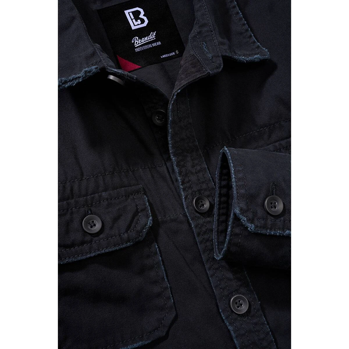 Das Ladies Vintage Shirt Longsleeve von Brandit besticht durch seinen femininen Schnitt, seinen hohen Tragekomfort und seinen tollen, zeitlosen Look. Das Besondere an diesem Shirt ist die aufwendige Vintage Waschung mit den etwas ausgefranzten Kanten, die für einen angesagten Used-Effekt sorgen. Der weiche, natürliche Baumwollstoff bietet ein äußerst angenehmes Tragegefühl. Das Hemd besitzt zwei aufgesetzte Brusttaschen mit Patte und Knopfverschluss, eine durchgehende Knopfleiste und lässt sich ideal mit Jeans oder Cargohosen kombinieren.