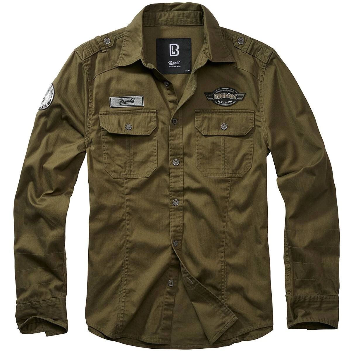 Das Brandit Luis Vintageshirt ist ein klassisch gerade geschnittenes Hemd für jede Gelegenheit. Es besitzt 2 Brusttaschen mit Knöpfen, Schulterklappen und eine Knopfleiste. Das Brandit-Label aus Metall und die 3 gestickten Aufnäher machen das Shirt zum echten Hingucker.