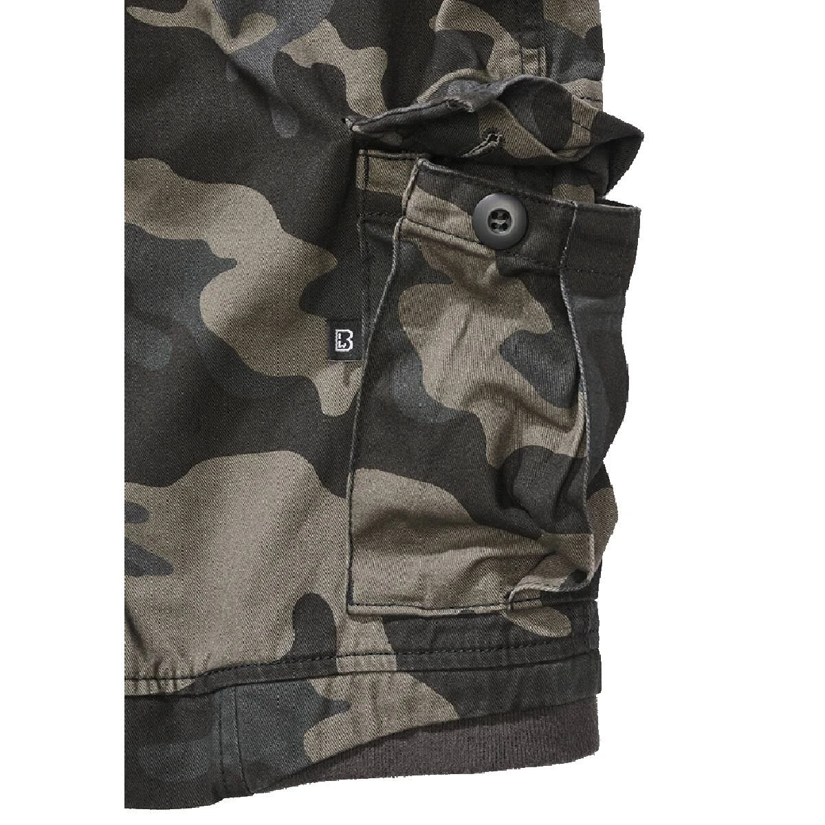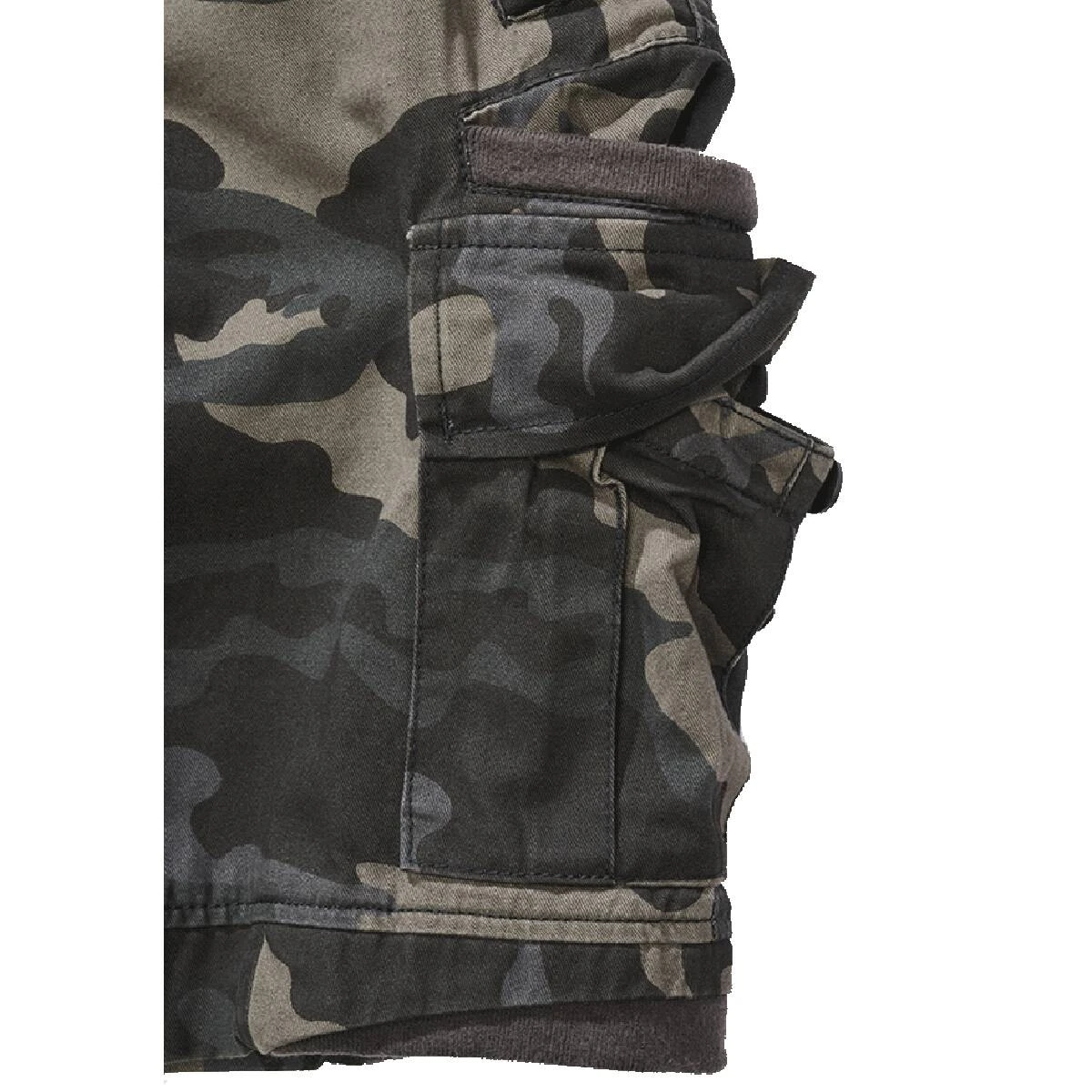 Die Packham Vintage Shorts von Brandit ist eine lässige, robuste Freizeit Shorts aus äußerst hautfreundlicher und strapazierfähiger Baumwolle. Der elastische Bund mit Tunnelzug sorgt für ein perfektes Tragegefühl. Die zwei praktischen, aufgesetzten Cargotaschen, die beiden seitlichen Eingrifftaschen sowie die beiden Gesäßtaschen mit Knopfverschluss bieten genügend Stauraum für alles, was man unterwegs so dabeihaben muss. Die Packham Shorts wird mit einem Reißverschluss verschlossen. Mit ihrem coolen Look, der durch die stylischen Bündchen-Elemente am Beinende betont wird, ist sie ein genialer Begleiter im Alltag.