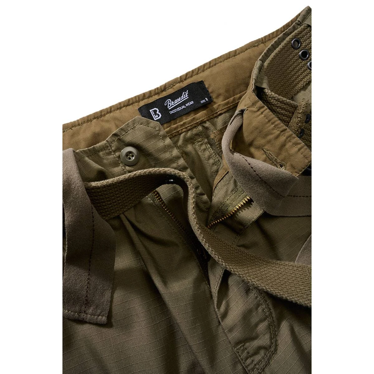 Die bewährte Brandit Savage Shorts gibt es jetzt auch aus leichtem und robustem RipStop-Material. Damit ist sie nicht nur stylisch und bequem, sondern auch für härtere Outdoor-Einsätze bestens geeignet. Sie besitzt 2 schräge Einschubtaschen, 2 geräumige Cargo-Beintaschen mit Druckknopfverschluss, 2 Gesäßtaschen mit Druckknopfverschluss sowie 2 Minipockets mit Druckknopfverschluss. Des Weiteren gib es an der rechten Seite ein kleines Reißverschlussfach sowie ein Print auf der rechten Beintasche. Am Bund und in den Beinenden befinden sich Tunnelzüge. Die tolle Cargoshorts mit weitem Bein wird inklusive eines robusten Vintage Gürtels ausgeliefert.