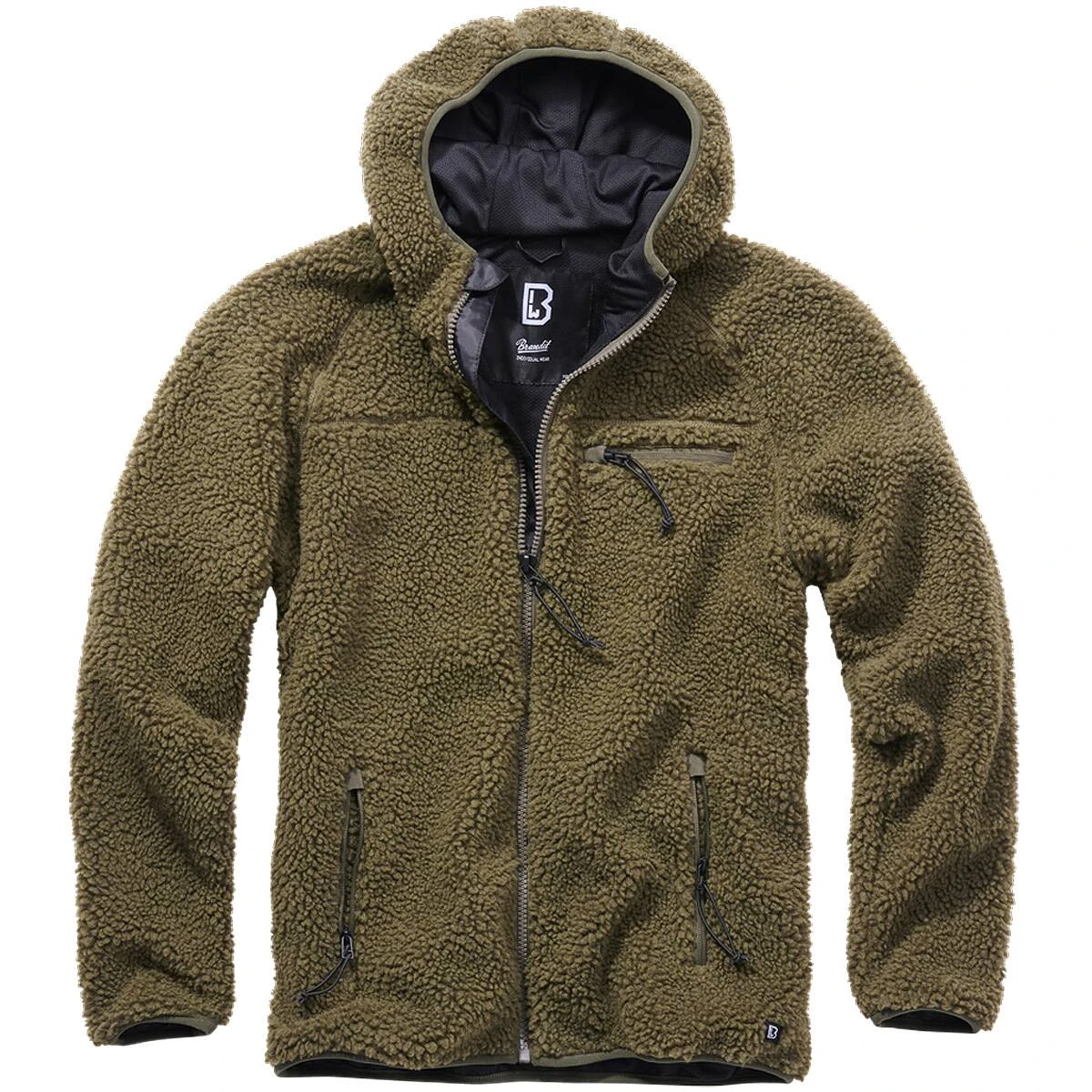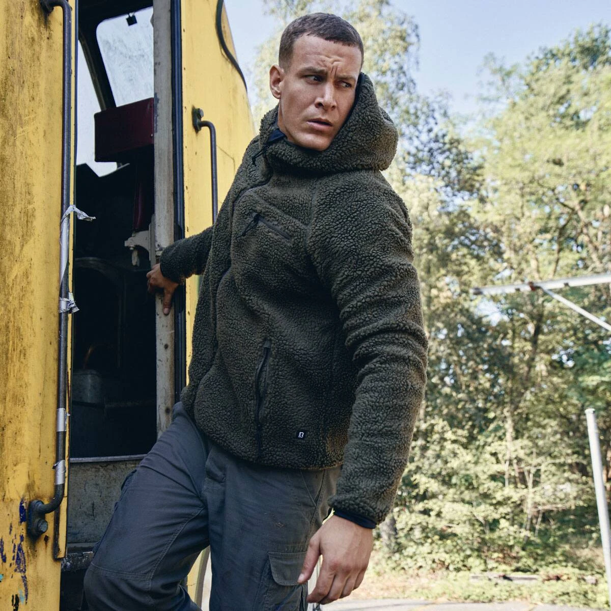 Die Teddyfleece Worker Jacke von Brandit ist ein Kleidungsstück mit absoluter Wohlfühlgarantie. Durch das hochflorige, warme Teddy-Fleece außen und das atmungsaktive Innenfutter bietet sie eine hohe Wärmeleistung. Die Jacke besitzt eine geräumige Kapuze, einen hochwertigen Mittelreißverschluss mit Kinnschutz und Windschutzleiste, eine geräumige Brusttasche mit Reverse-Reißverschluss, 2 seitliche Reißverschlusstaschen sowie eine Innentasche mit Klettverschluss. An allen Zippern befindet sich eine Zughilfe. Durch den elastischen Ärmel- und Hüftbund ist man bestens vor Wind und Kälte geschützt. Das Teddyfleece Worker Jacket mit Kapuze ist normal geschnitten.