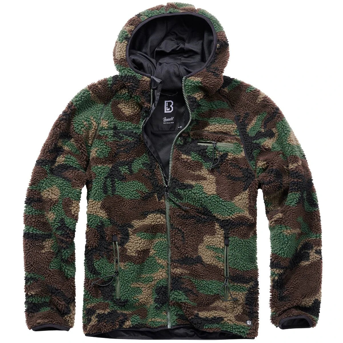 Die Teddyfleece Worker Jacke von Brandit ist ein Kleidungsstück mit absoluter Wohlfühlgarantie. Durch das hochflorige, warme Teddy-Fleece außen und das atmungsaktive Innenfutter bietet sie eine hohe Wärmeleistung. Die Jacke besitzt eine geräumige Kapuze, einen hochwertigen Mittelreißverschluss mit Kinnschutz und Windschutzleiste, eine geräumige Brusttasche mit Reverse-Reißverschluss, 2 seitliche Reißverschlusstaschen sowie eine Innentasche mit Klettverschluss. An allen Zippern befindet sich eine Zughilfe. Durch den elastischen Ärmel- und Hüftbund ist man bestens vor Wind und Kälte geschützt. Das Teddyfleece Worker Jacket mit Kapuze ist normal geschnitten.