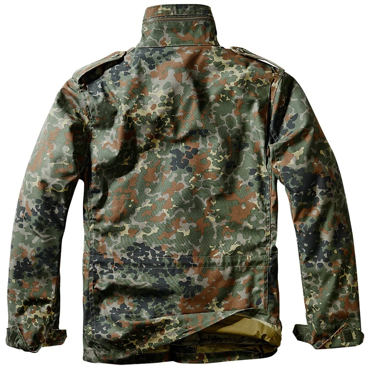 Die Jacke mit Baumwollfutter und ausknöpfbarem Zweitfutter ist die funktionelle Outdoor-Jacke nach dem Schnittmuster der legendären US Feldjacke M-65. Kombiniert mit dem Jacketliner hält sie im Winter sehr warm. Sie ist aber auch ideal als Übergangsjacke geeignet, wenn Sie das Futter einfach herausknöpfen. Die M-65 enthält 4 aufgesetzte große Pattentaschen sowie einen Frontreißverschluss, der durch eine Knopfleiste winddicht abgedeckt wird. Im Kragen befindet sich eine eingearbeitete Kapuze (mit Reißverschluss). Außerdem gibt es einen Kordelzug am Saum und an der Taille mit dem man die Weite bequem regulieren kann. Die Ärmel können durch Klettverschlüsse in der Weite verstellt werden.
