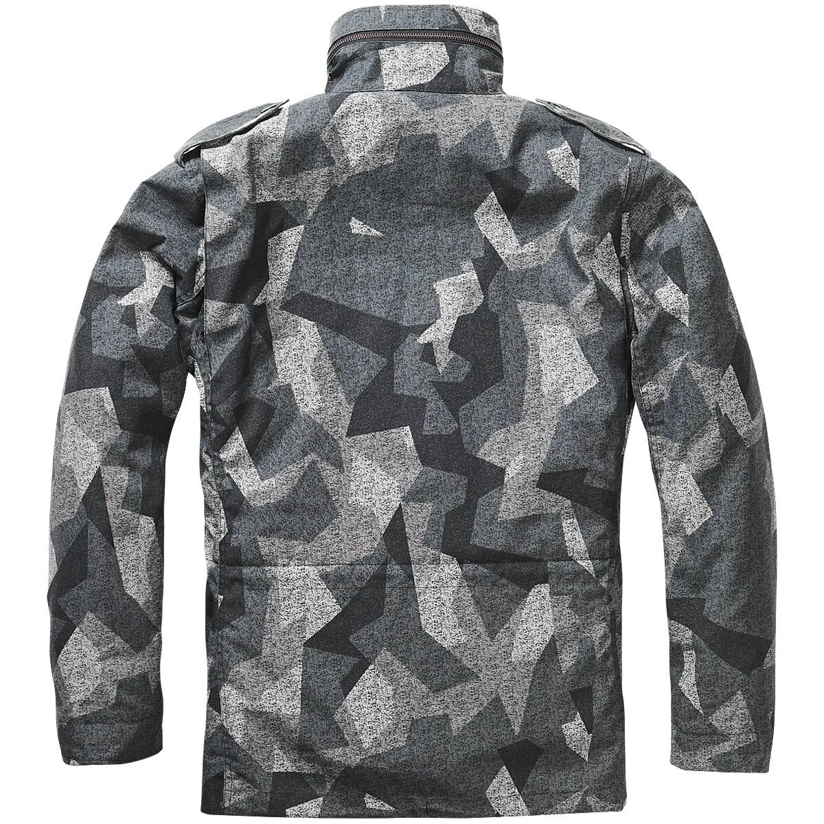 Die Jacke mit Baumwollfutter und ausknöpfbarem Zweitfutter ist die funktionelle Outdoor-Jacke nach dem Schnittmuster der legendären US Feldjacke M-65. Kombiniert mit dem Jacketliner hält sie im Winter sehr warm. Sie ist aber auch ideal als Übergangsjacke geeignet, wenn Sie das Futter einfach herausknöpfen. Die M-65 enthält 4 aufgesetzte große Pattentaschen sowie einen Frontreißverschluss, der durch eine Knopfleiste winddicht abgedeckt wird. Im Kragen befindet sich eine eingearbeitete Kapuze (mit Reißverschluss). Außerdem gibt es einen Kordelzug am Saum und an der Taille mit dem man die Weite bequem regulieren kann. Die Ärmel können durch Klettverschlüsse in der Weite verstellt werden.