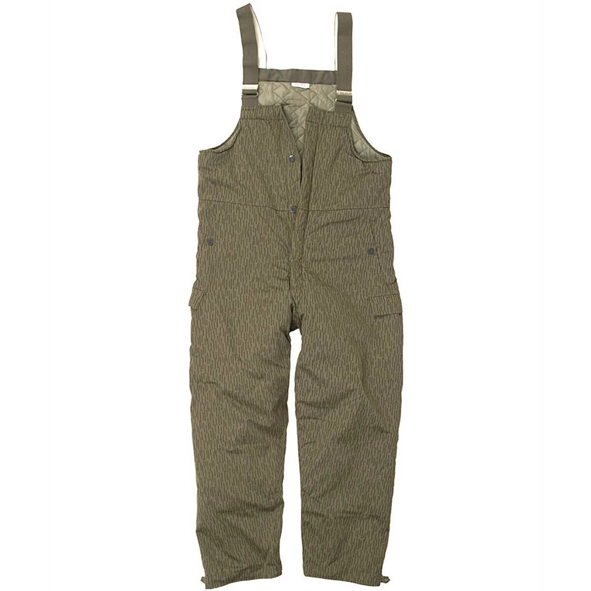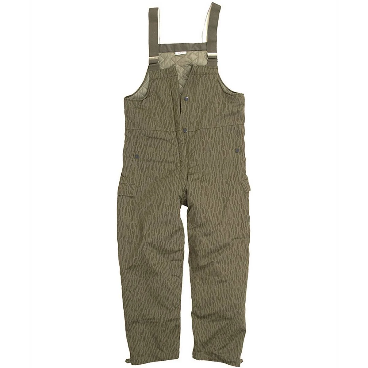 Die warme NVA Latzhose mit Latz im bekannten Strichtarn-Muster besitzt zwei seitliche Schubtaschen mit Knöpfen, zwei Beintaschen mit Patte und Knopf sowie eine Tasche mit Knopf im Inneren des Latzes. Das eingearbeitete Steppfutter schützt optimal vor Kälte. Der Hosenbund mit elastischem Gummizug gewährleistet eine optimale Passform. Diese Hose lässt sich perfekt über anderen Hosen tragen. Die Beinabschlussweite lässt sich mittels Knöpfen regulieren, und passt sich problemlos verschiedenem Schuhwerk an.