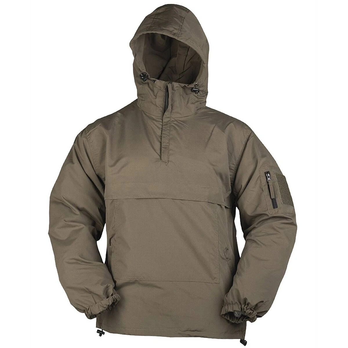 Der Combat Anorak von MIL-TEC besitzt eine große Front-Tasche mit verdecktem Reißverschluss, 2 seitliche Schubtaschen mit verdecktem Reißverschluss sowie praktische Gummizugbänder mit Kordelstopper in Kapuze und Saum. Die Ärmelbündchen sind mit einem elastischen Gummizug ausgestattet. Durch sein leichtes, ungefüttertes Microfaser-Material ist man mit diesem Windbreaker besonders in der wärmeren Jahreszeit gegen Wind und Wetter geschützt.