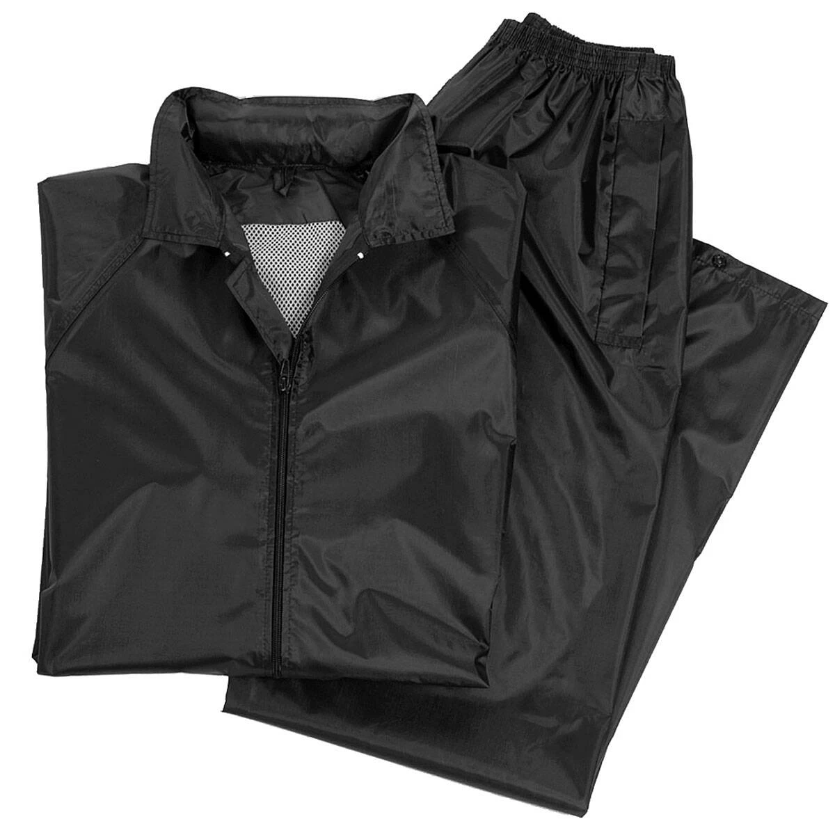 Dieser sehr leichte Wetterschutzanzug besticht durch sein kleines Packmaß und wird inkl. Tasche geliefert. Die Jacke besitzt einen Frontreißverschluss, eine integrierte Kapuze im Kragen sowie 2 seitliche Einschubtaschen. Sie hat einen Abschlussbund mit Kordel und Stopper. Die weit geschnittene Regenhose besitzt 2 Durchgreiftaschen und am Hosenbund einen elastischen Gummizug. Am Beinabschluss befinden sich Druckknöpfe.
