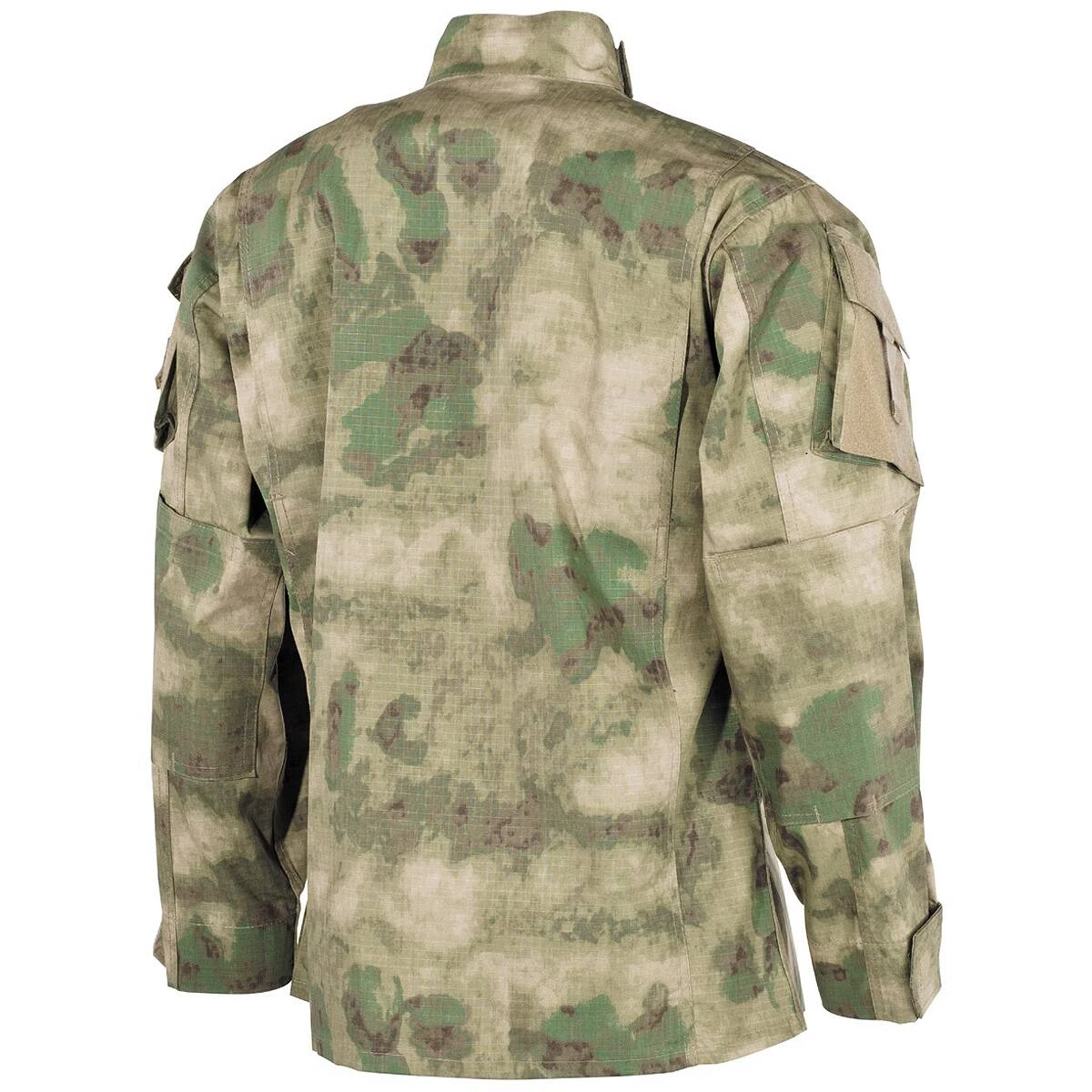Die originalgetreue ACU (Army Combat Uniform) Feldjacke ist das aktuelle Basismodell der US Army für alle Einsatzgebiete und wird aus hochwertigem Rip Stop-Material gefertigt, welches ein extrem reißfestes Baumwollmaterial und damit extrem beanspruchbar ist. Sie besitzt 2 schräg aufgesetzte Brusttaschen mit seitlicher Patte und Klettverschluss sowie 2 Schultertaschen mit Klett zum Anbringen von Abzeichen. Der Ellenbogenbesatz kann durch Polsterung verstärkt werden. Des Weiteren gibt es einen verdeckten 2-Wege-Frontreißverschluss mit Klettverschluss, einen Stehkragen mit Klett zur Weitenregulierung sowie 2 Rückenfalten für mehr Bewegungsfreiheit. Auf Brusthöhe befinden sich 3 Klettflauschpatches zum Anbringen von Namensschildern usw. Der Armabschluss ist ebenfalls mit Klett in der Weite verstellbar.