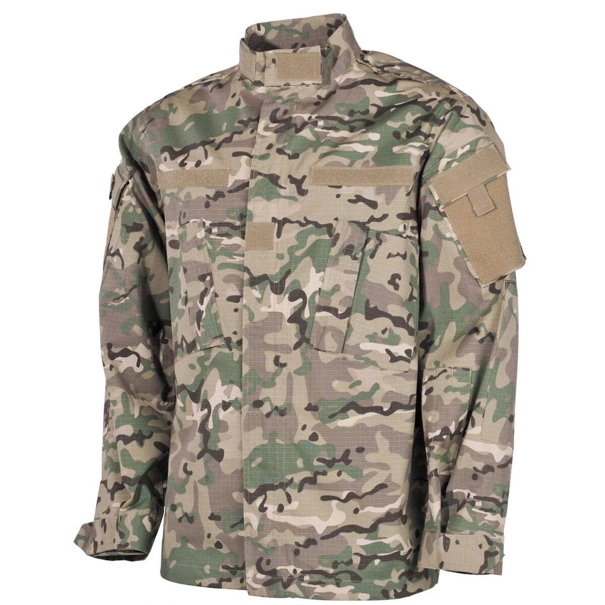 Die originalgetreue ACU (Army Combat Uniform) Feldjacke ist das aktuelle Basismodell der US Army für alle Einsatzgebiete und wird aus hochwertigem Rip Stop-Material gefertigt, welches ein extrem reißfestes Baumwollmaterial und damit extrem beanspruchbar ist. Sie besitzt 2 schräg aufgesetzte Brusttaschen mit seitlicher Patte und Klettverschluss sowie 2 Schultertaschen mit Klett zum Anbringen von Abzeichen. Der Ellenbogenbesatz kann durch Polsterung verstärkt werden. Des Weiteren gibt es einen verdeckten 2-Wege-Frontreißverschluss mit Klettverschluss, einen Stehkragen mit Klett zur Weitenregulierung sowie 2 Rückenfalten für mehr Bewegungsfreiheit. Auf Brusthöhe befinden sich 3 Klettflauschpatches zum Anbringen von Namensschildern usw. Der Armabschluss ist ebenfalls mit Klett in der Weite verstellbar.